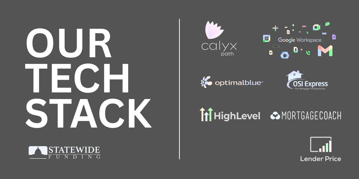 That's why we have invested significant time, resources and money to implement Calyx Path and Optimal Blue to name a few. Each team member at Statewide Funding gets access to the latest tech stack to help them streamline their personal production.